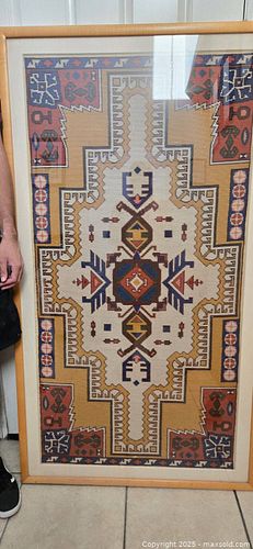 Framed Collectible 62” TURKISH RUG Vintage