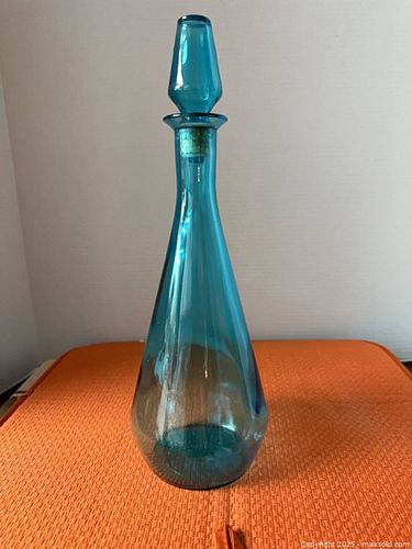 1960s Teal Glass Genie Bottle, Mid-Century Modern