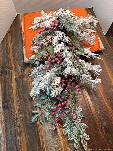 Christmas Swag, Flocked Snow Finish with Glittered Berries and Pine Cones, 30 in